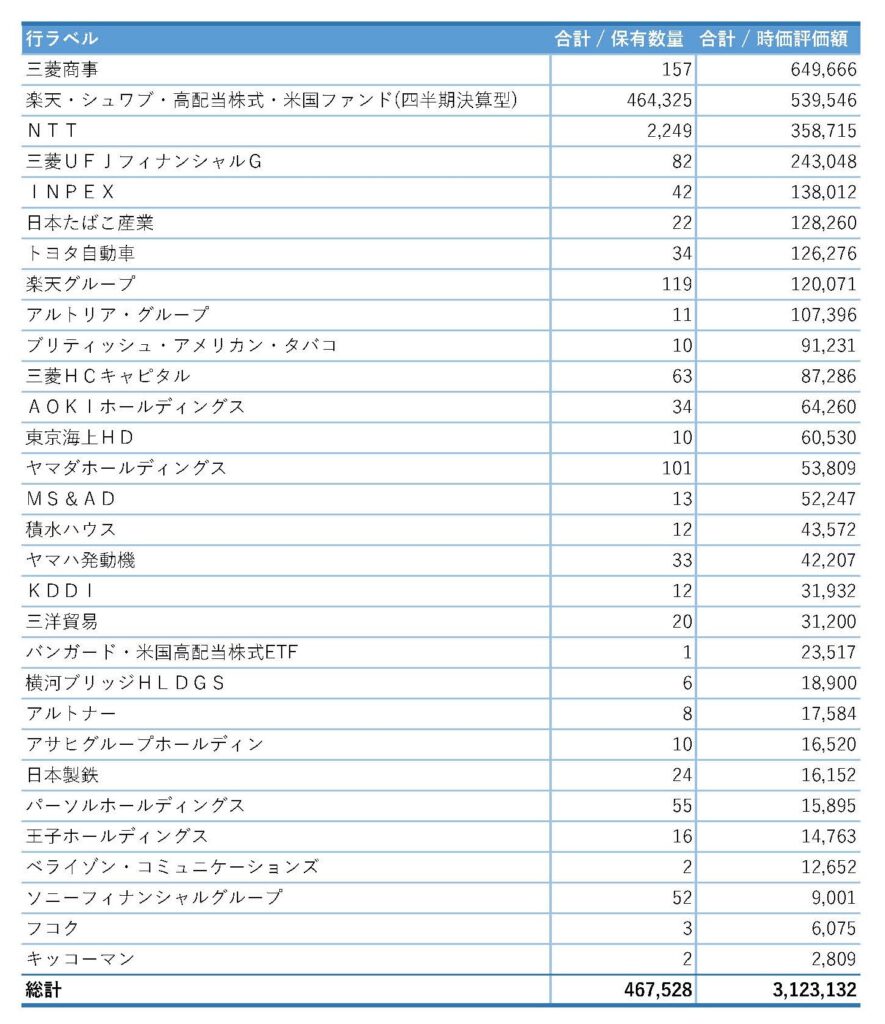 順位 銘柄 保有数量 時価評価額